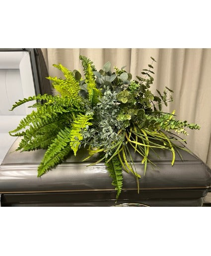 This casket piece is to honor the true nature lover. A combination of selected greenery.